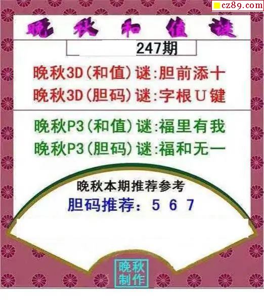 晚秋和值谜2025247期3d图谜
