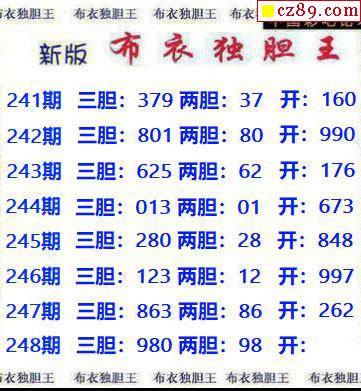 > 新版布衣独胆王2025248期3d图谜