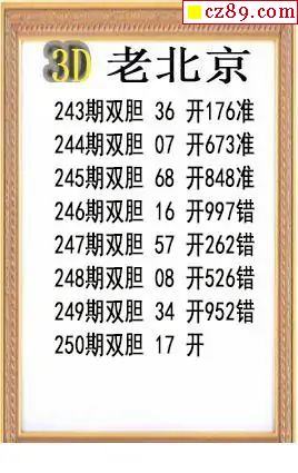 老北京2025250期3d图谜