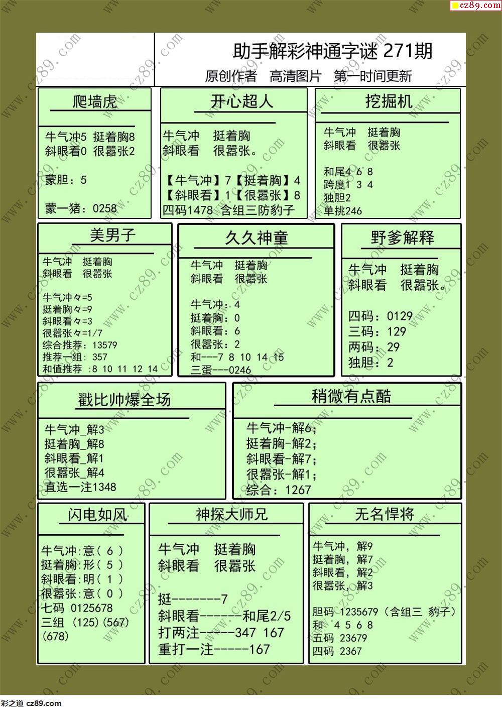 > 25年271牛彩解福彩3d彩神通字画报