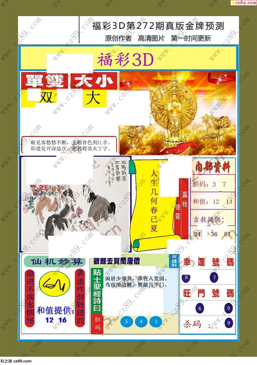 > 25年272福彩3d真版金牌预测彩报
