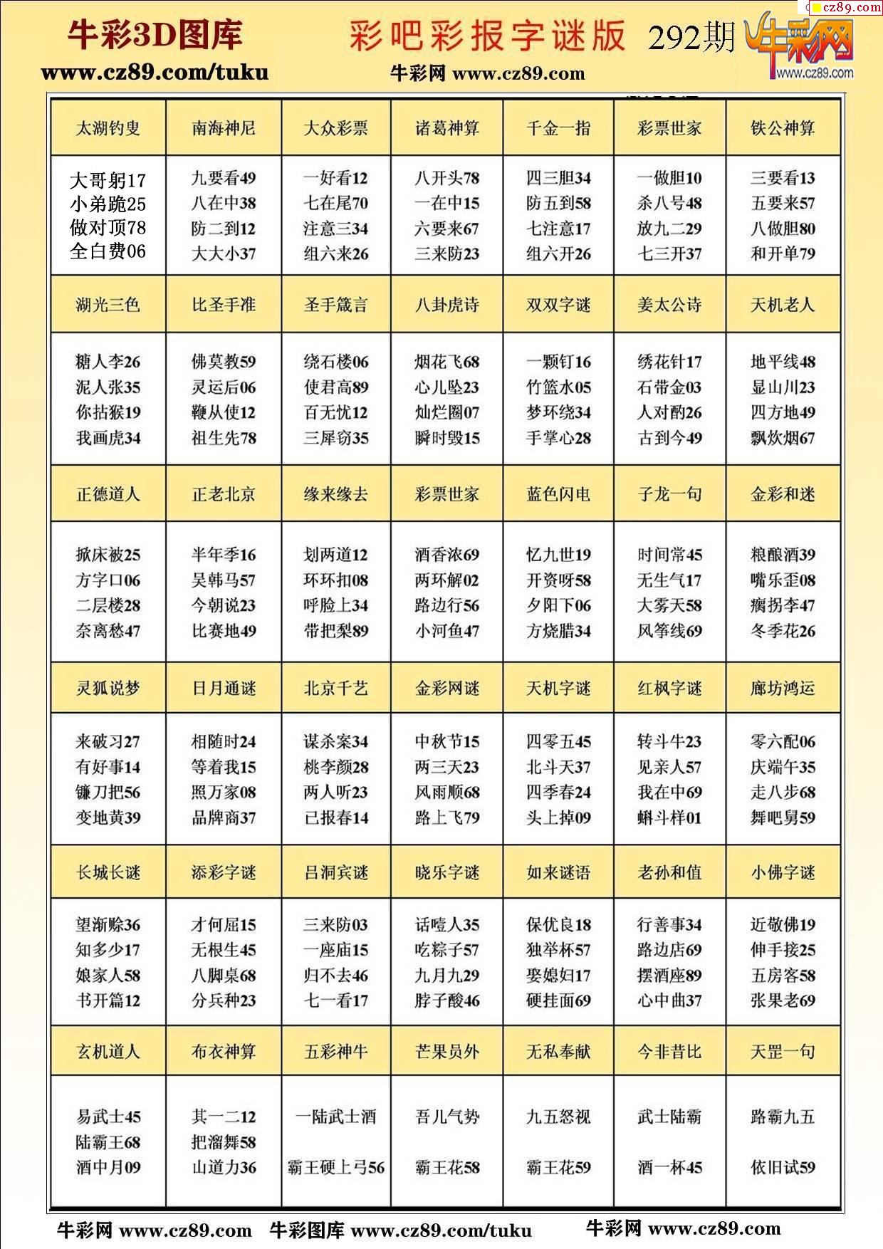 > 牛彩版3D字谜彩报图25年292期打印版