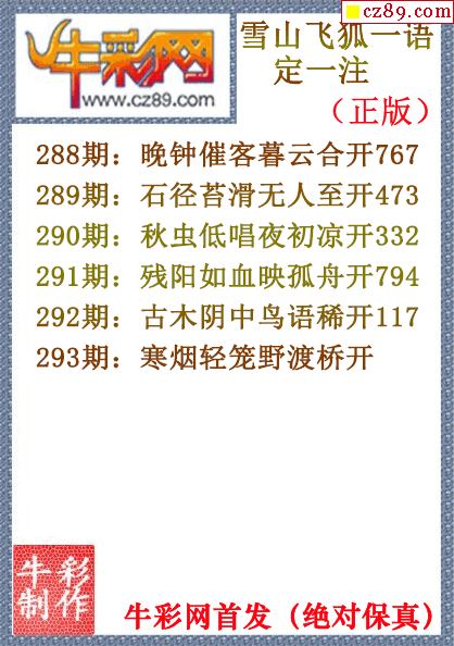 > 25年293期雪山飞狐一语定一注(原创正版)