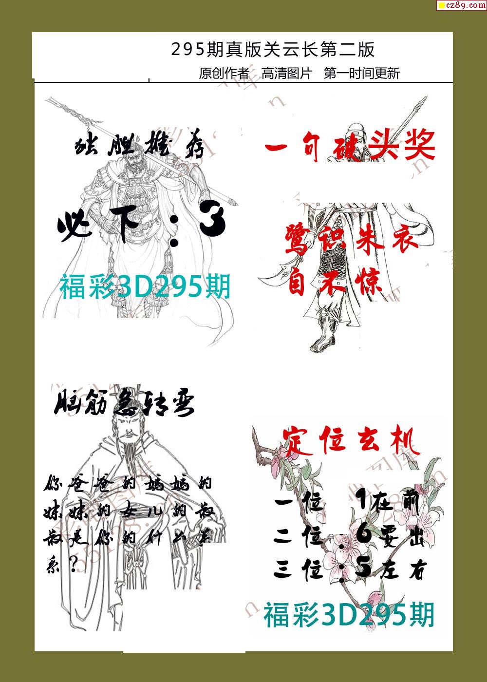 25年295期福彩3d真版关云长图谜