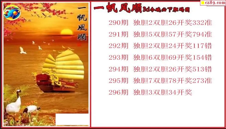 > 25年296期3d 一帆风顺今晚必下胆码图