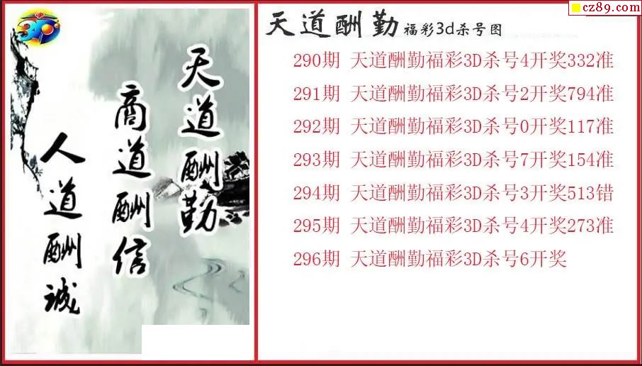 > 25年296期3d 天道酬勤杀号图