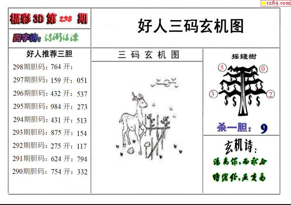 福彩3D2025298期 山上的羊飞鸟胆码图