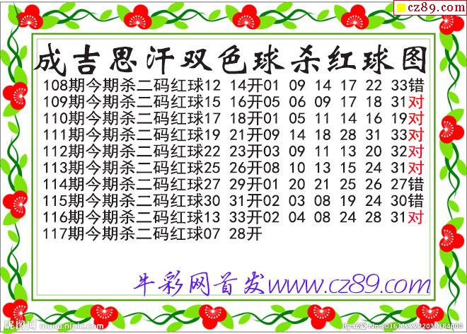 成吉思汗杀两码红球117期双色球图谜