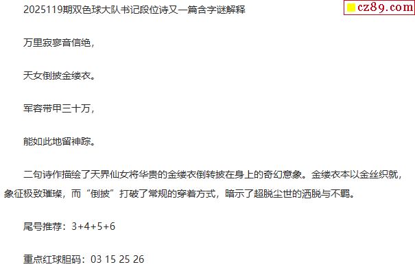 > 25年福彩双色球119期 大队书记段位诗另一篇